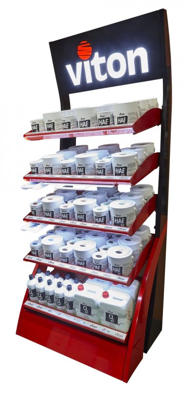 Na jaro jsme připravili zajímavou novinku v podobě designových stojanů pro prezentaci vybraného sortimentu značky VITON. Stojany obsahují řadu vychytávek např. podsvícení LED diodami, integrované zásobníky na letáky či vysouvací vzorkovnice. Lze je umístit samostatně, vedle sebe či zády k sobě. Jsou navrženy tak, aby vyhovovaly dispozicím prakticky jakékoliv prodejny. S nabídkou Vás v nejbližší době seznámí naši obchodní zástupci.