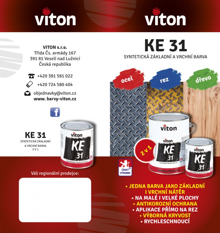 KE 31 můžete zakoupit v naší podnikové prodejně nebo v našich partnerských prodejnách v ČR i na Slovensku, jejichž přehled naleznete na: https://www.barvy-viton.cz/tonovaci-centra/